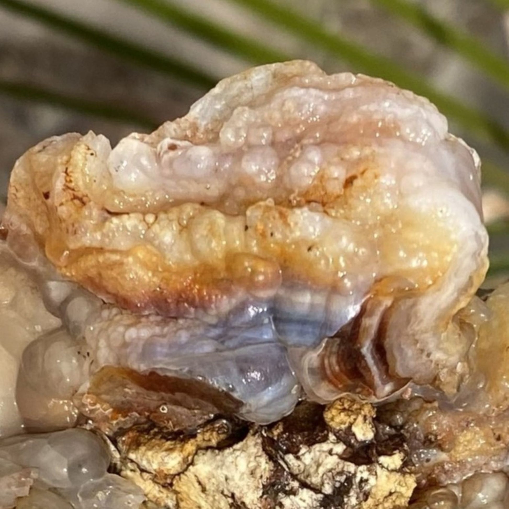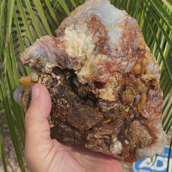 The all-natural rough mineral specimens often feature wonderful druzy quartz crystal formations which add sparkle and texture to the stone’s surface. Some pieces also have a protective chalcedony cap which preserves the vivid fire layers beneath and enhances the carving potential. These natural features make Slaughter Mountain fire agate ideal for lapidary artists who seek material that allows for deep carving and a high contrast polish which reveals the stone’s full spectrum of fiery brilliance.